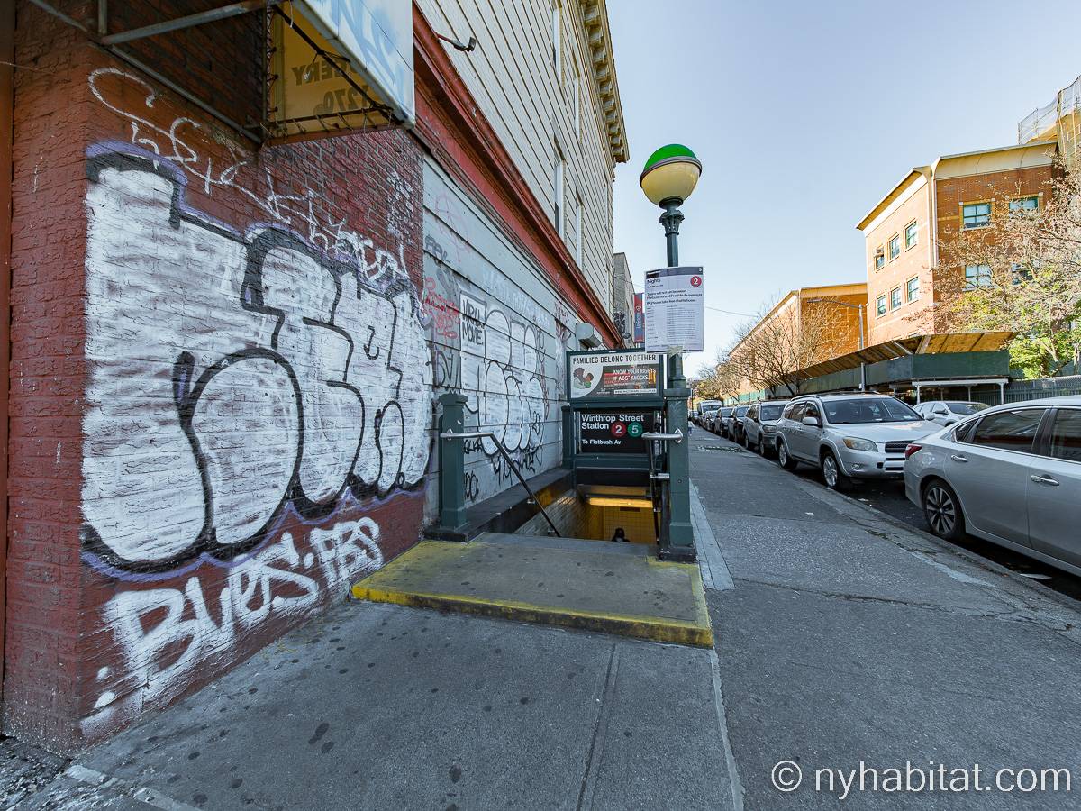 Puede tomar las líneas 2 o 5, en la estación de Winthrop Street y Nostrand Avenue, que está a 300 metros de distancia del apartamento.