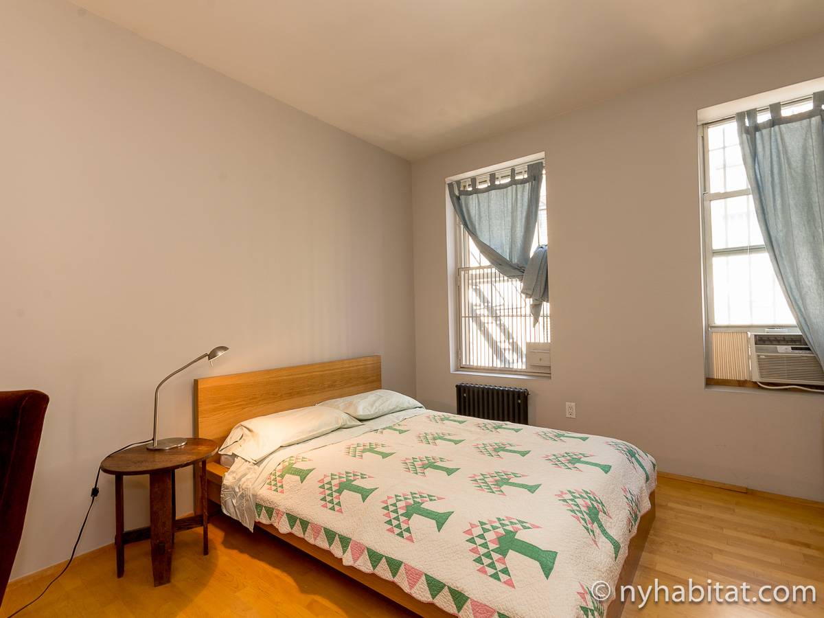 Este apartamento estudio con alcoba completamente amueblado está situado en el Lower East Side de Manhattan. Este alquiler de alrededor de 46 m2 se encuentra en el tercer piso (equivalente al segundo piso en Europa) de un edificio cerca de la esquina de Clinton Street y Rivington Street. El apartamento cuenta con pisos de madera y un diseño abierto y segmentado a la vez.