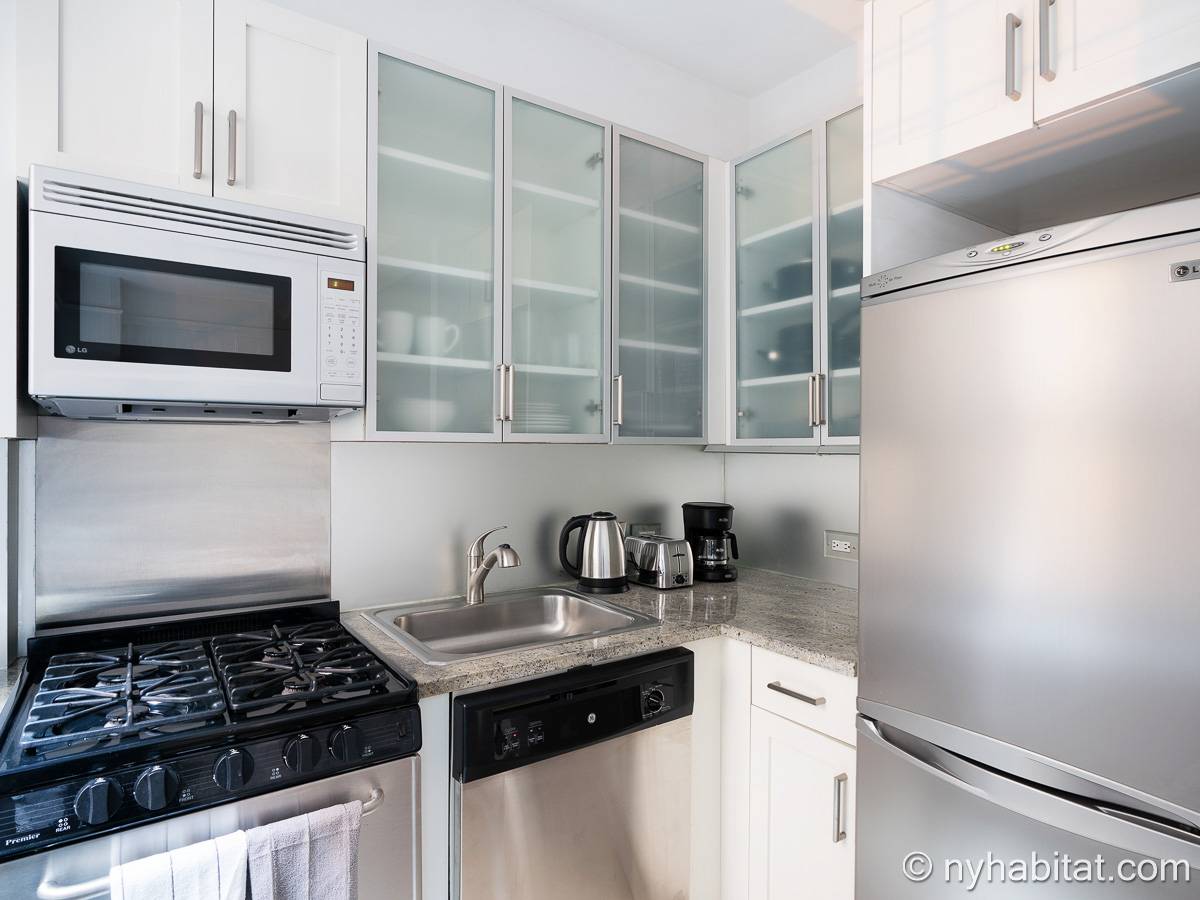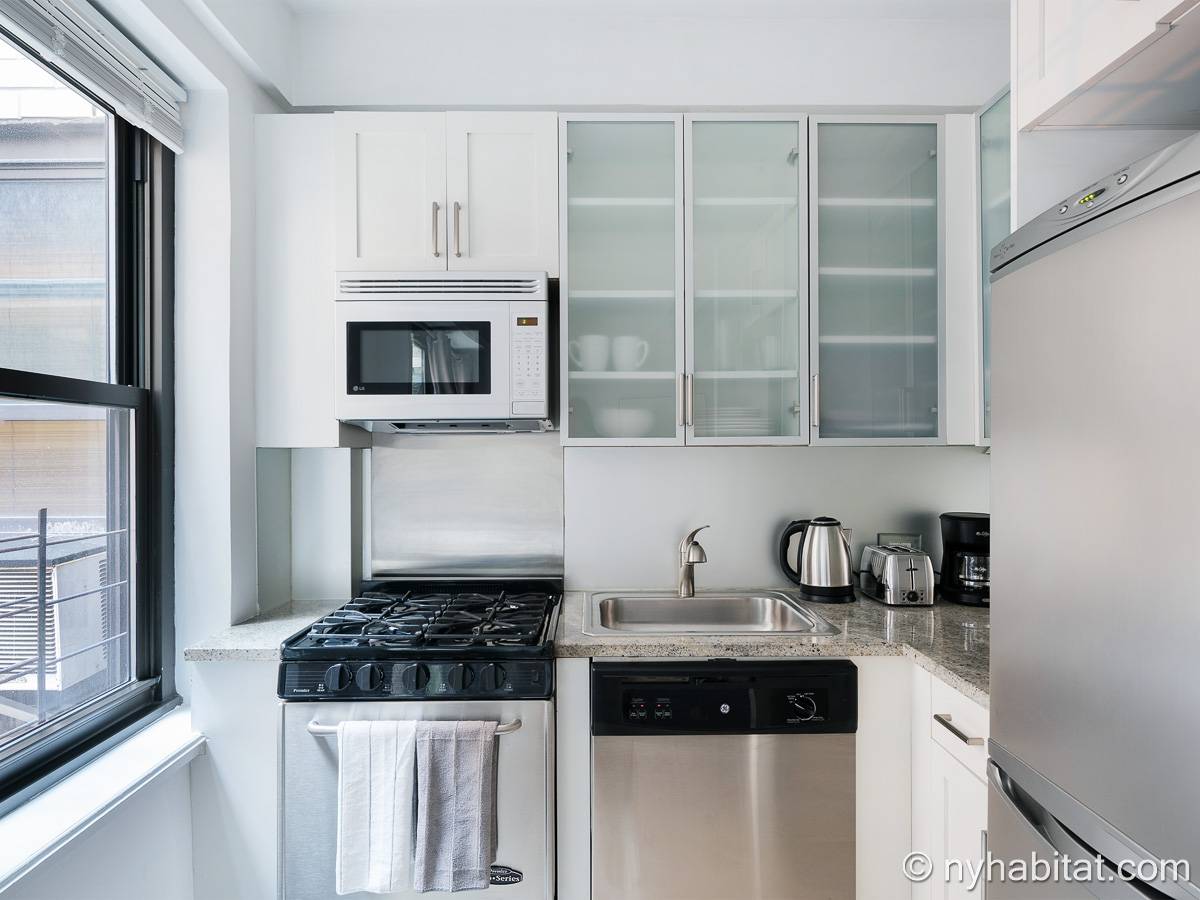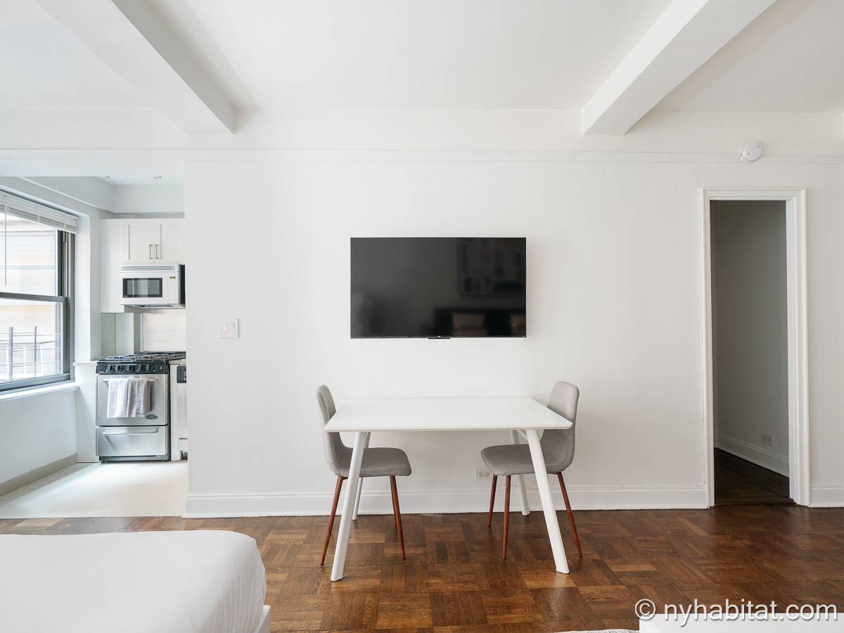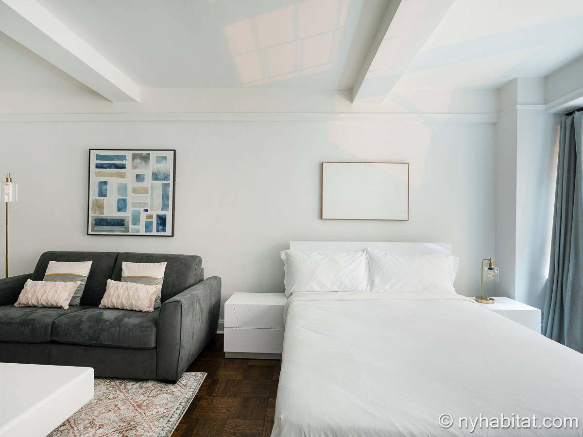 Este apartamento estudio amueblado en el barrio de Midtown East de Manhattan, se encuentra cerca de la esquina de East 52nd Street y 2nd Avenue, este alquiler de Nueva York se encuentra en el segundo piso (equivalente al primer piso en Europa) de un edificio con ascensor. El edificio cuenta con lavandería y portero.