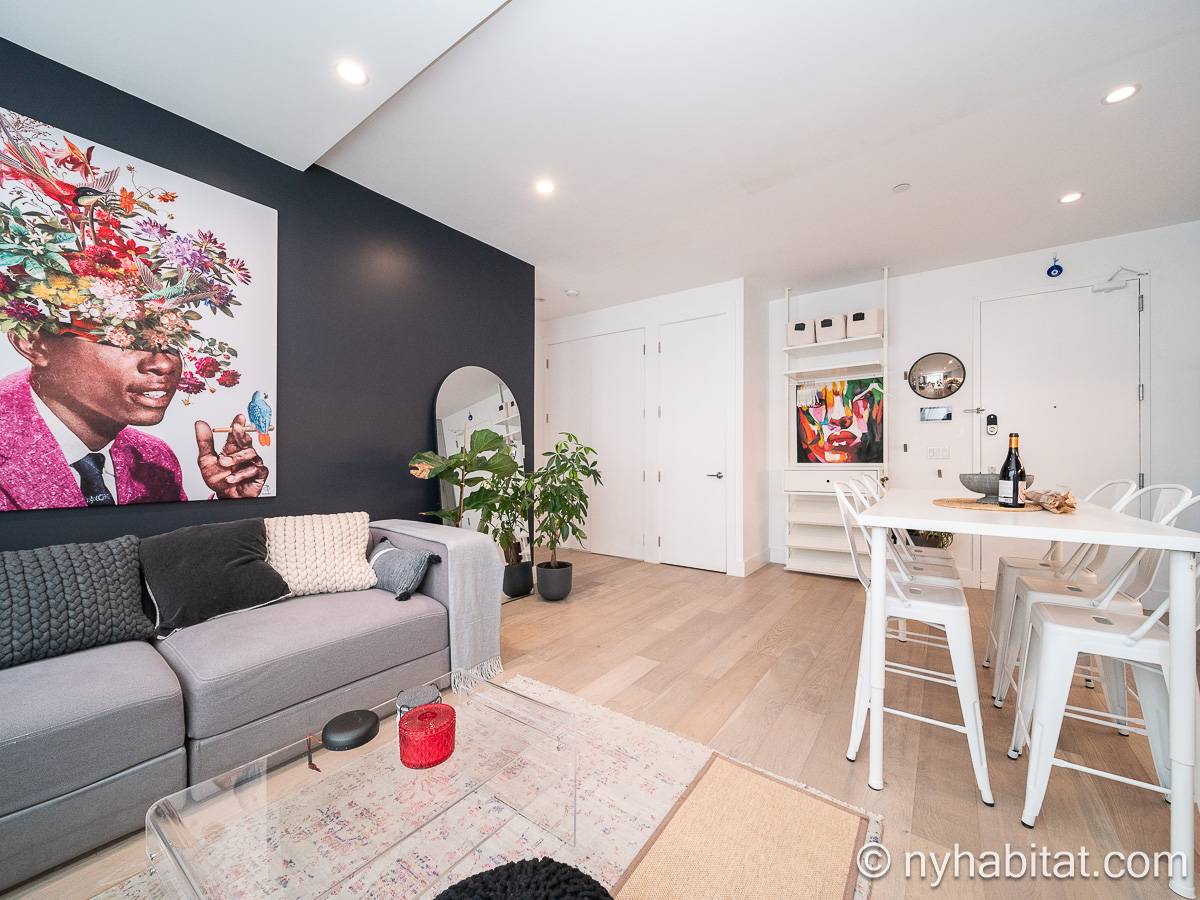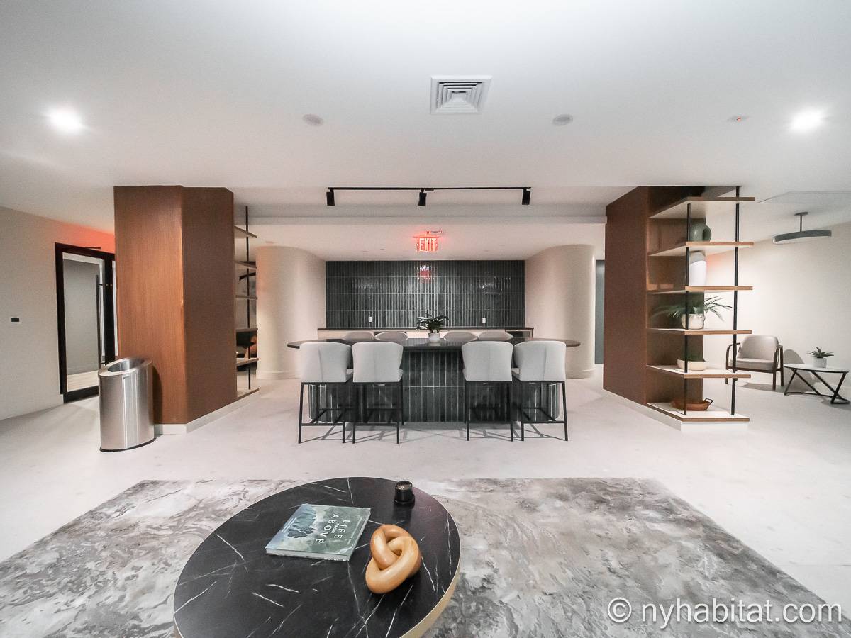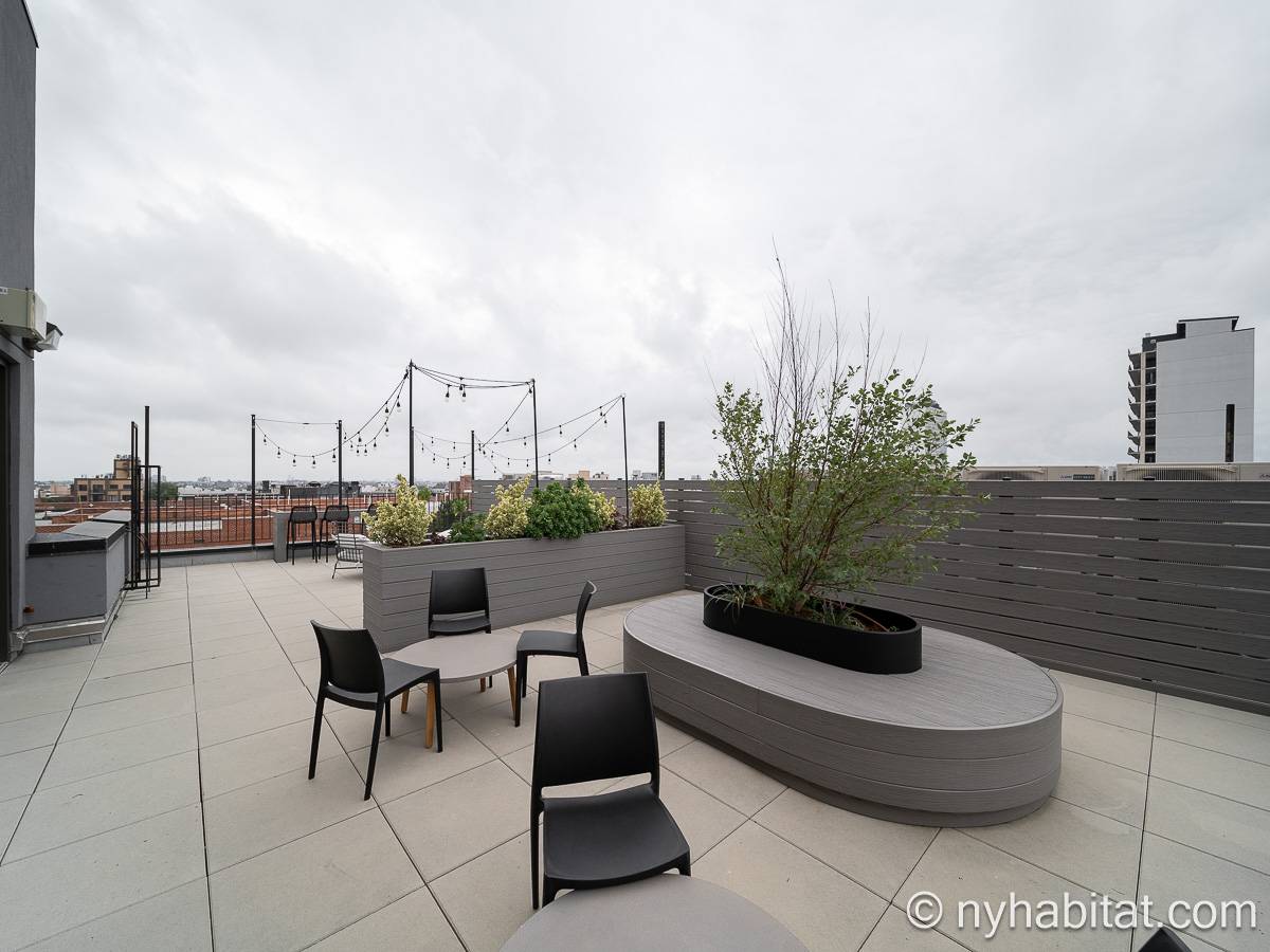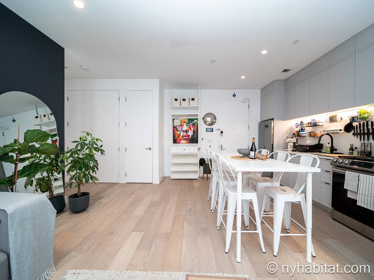Ubicado en Flatbush, Brooklyn, Nueva York, este ático amueblado de 1 dormitorio y 1 baño ofrece un espacio funcional con comodidades modernas. Se encuentra en la última planta de un edificio que dispone de gimnasio y sistema de seguridad. Cabe señalar que hay algunas escaleras antes de acceder al ascensor.