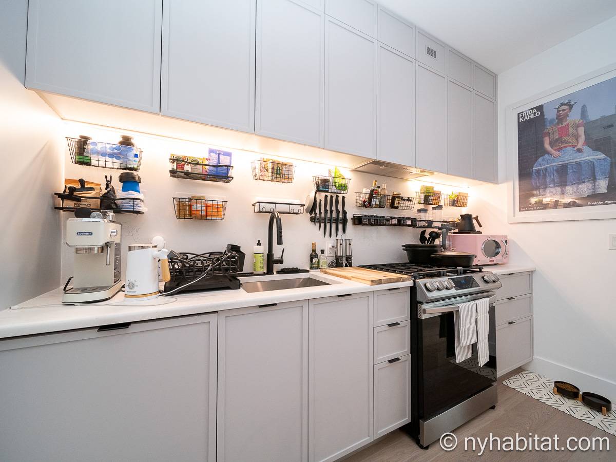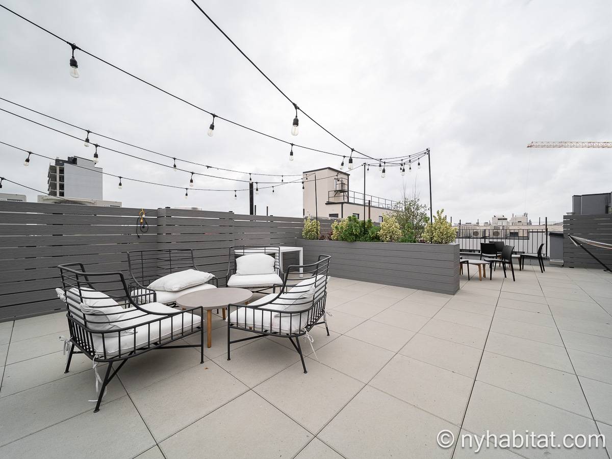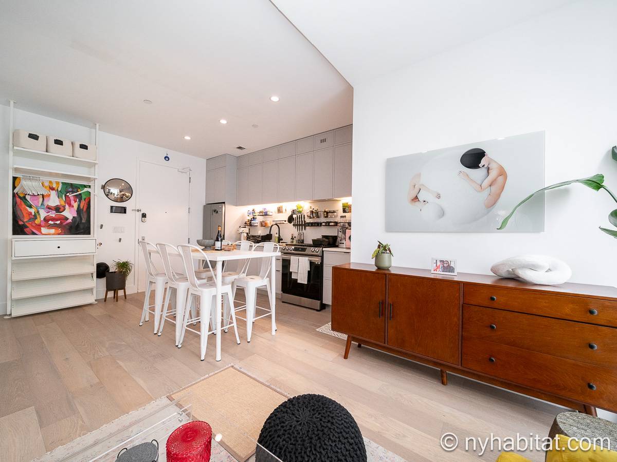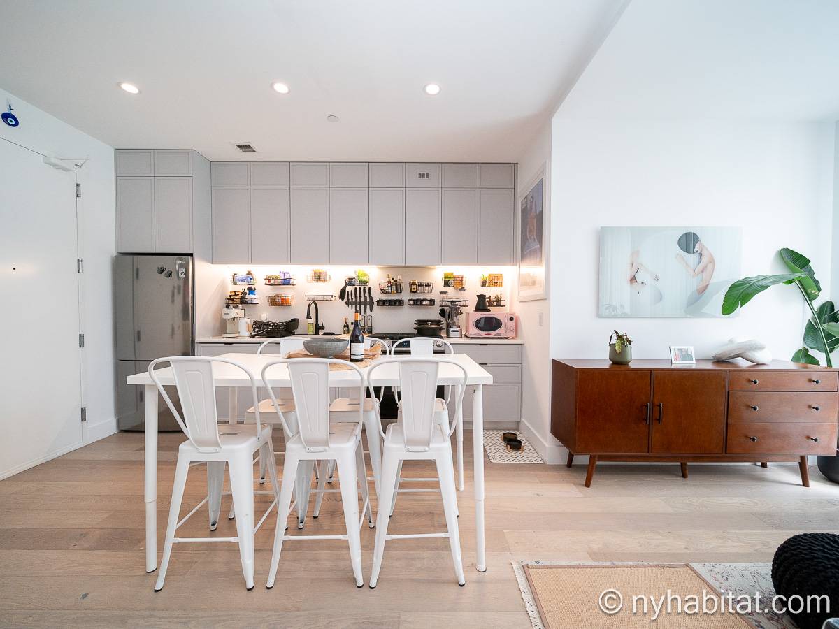 Ubicado en Flatbush, Brooklyn, Nueva York, este ático amueblado de 1 dormitorio y 1 baño ofrece un espacio funcional con comodidades modernas. Se encuentra en la última planta de un edificio que dispone de gimnasio y sistema de seguridad. Cabe señalar que hay algunas escaleras antes de acceder al ascensor.