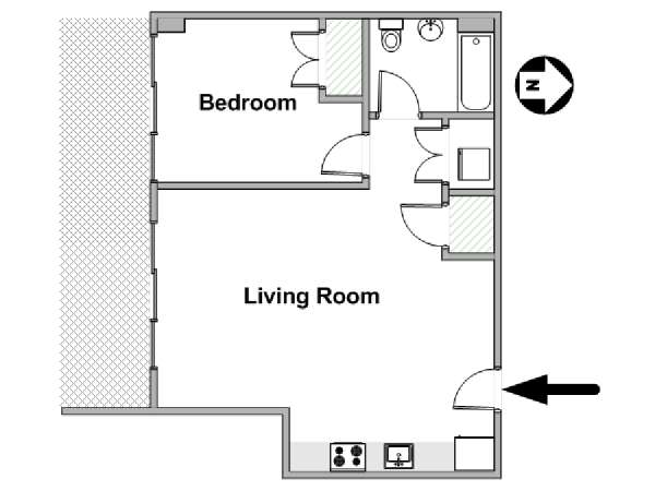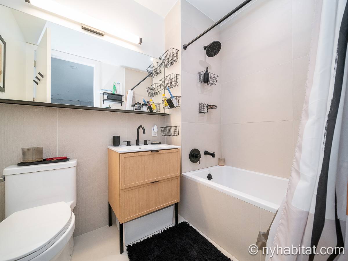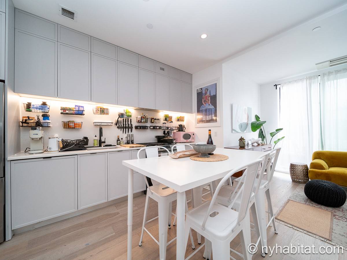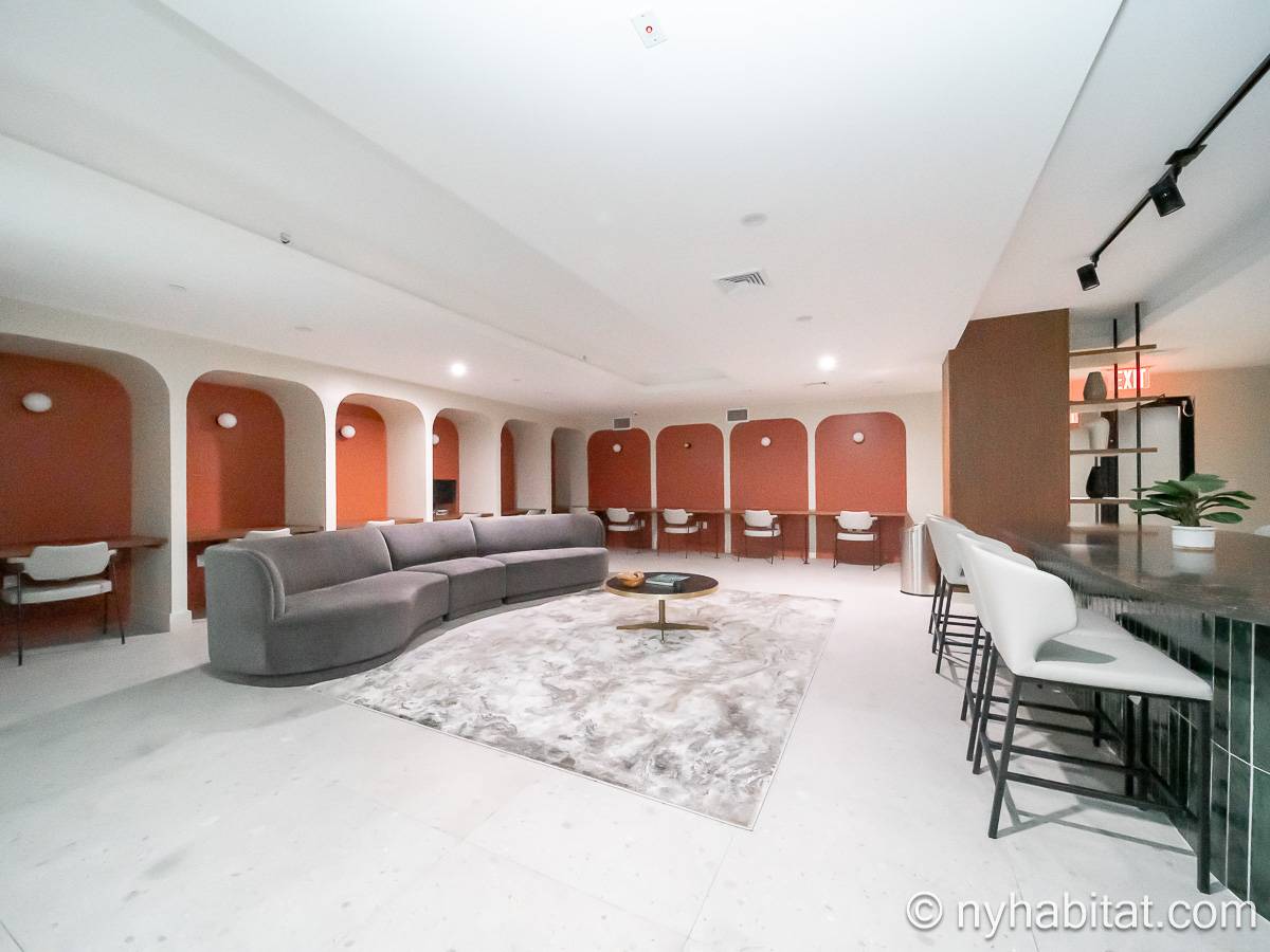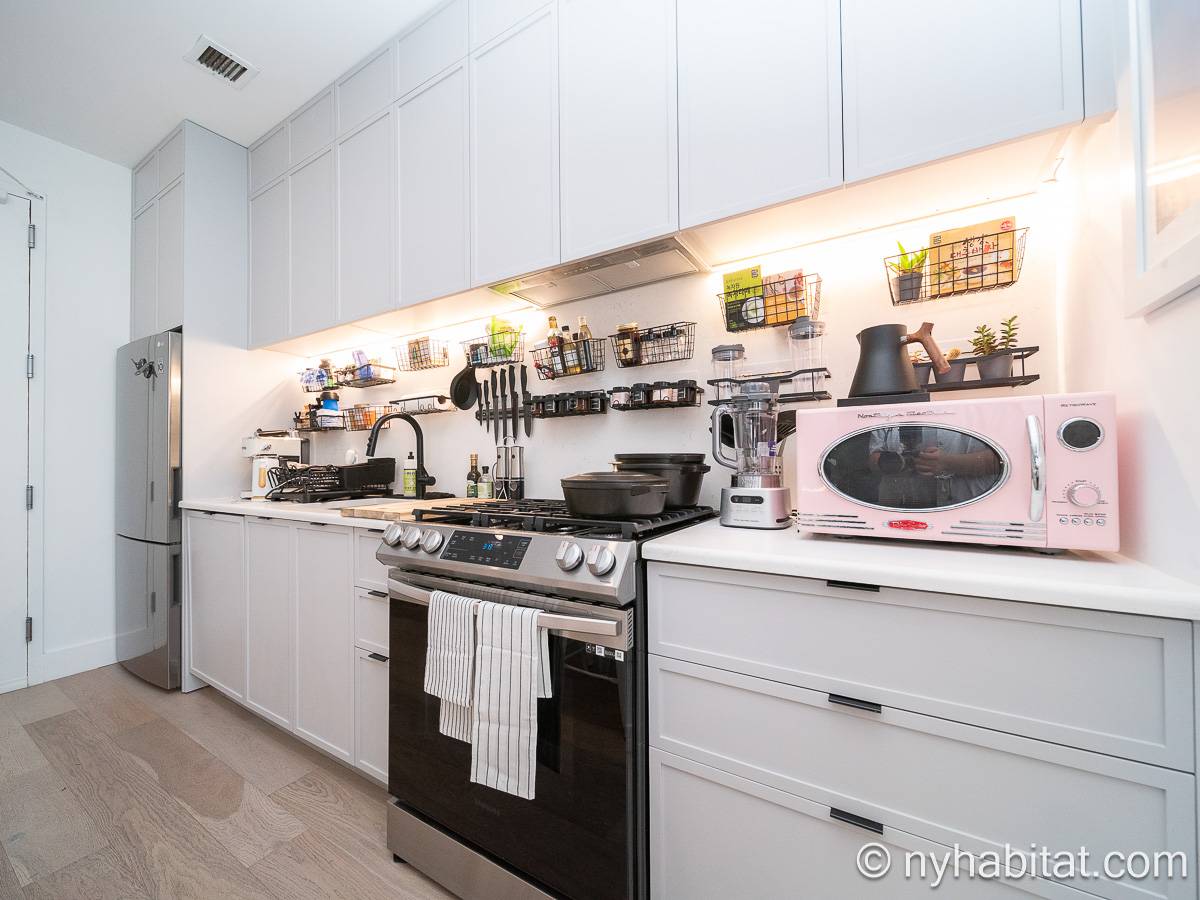 Ubicado en Flatbush, Brooklyn, Nueva York, este ático amueblado de 1 dormitorio y 1 baño ofrece un espacio funcional con comodidades modernas. Se encuentra en la última planta de un edificio que dispone de gimnasio y sistema de seguridad. Cabe señalar que hay algunas escaleras antes de acceder al ascensor.