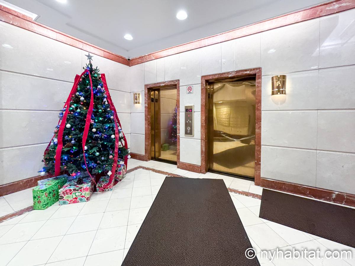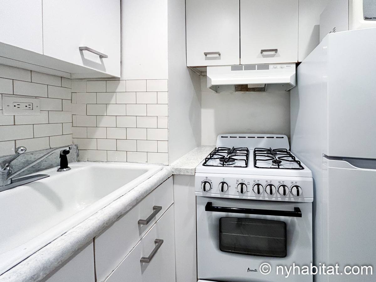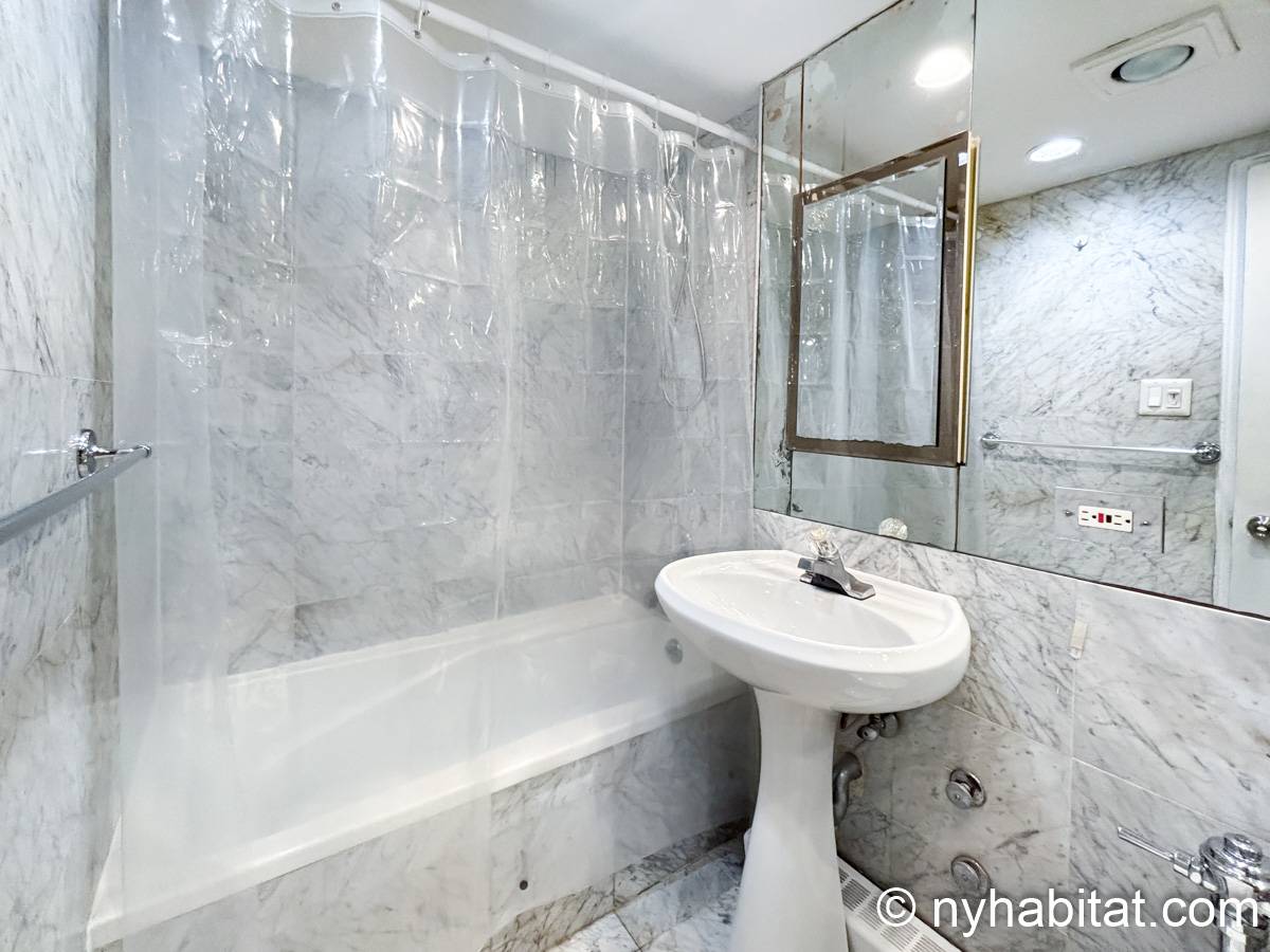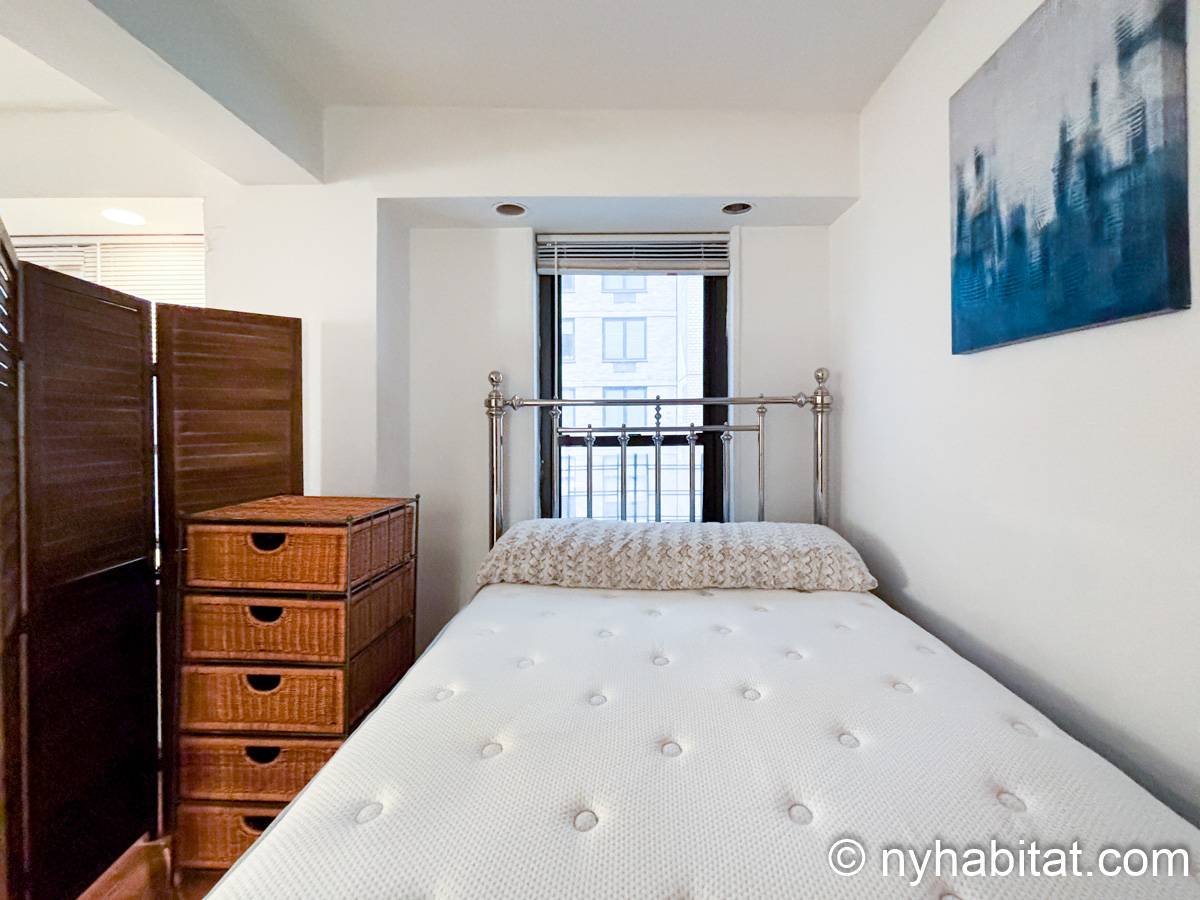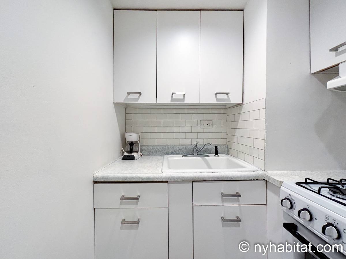 Este apartamento estudio amueblado con un baño está disponible en Midtown East, Manhattan. Se encuentra ubicado a 1,3 km al este del Times Square y a 800 metros de la estación Grand Central y del edificio Chrysler. Este apartamento se encuentra en el 7mo piso (que equivale al 6to piso en Europa) de un edificio de 13 pisos situado cerca de la 47th Street y la 3rd Avenue. Este edificio neoyorquino dispone de una lavandería y un portero.