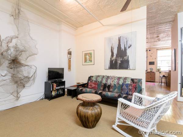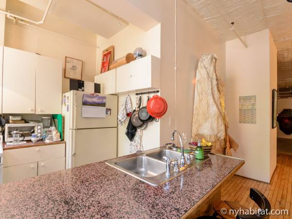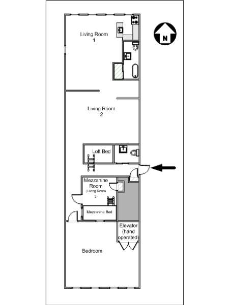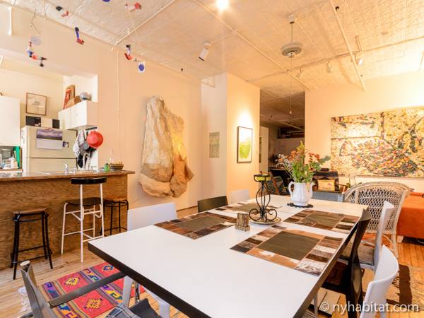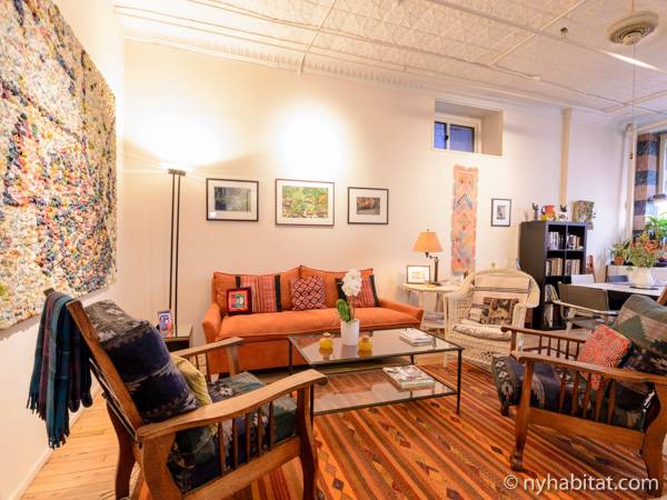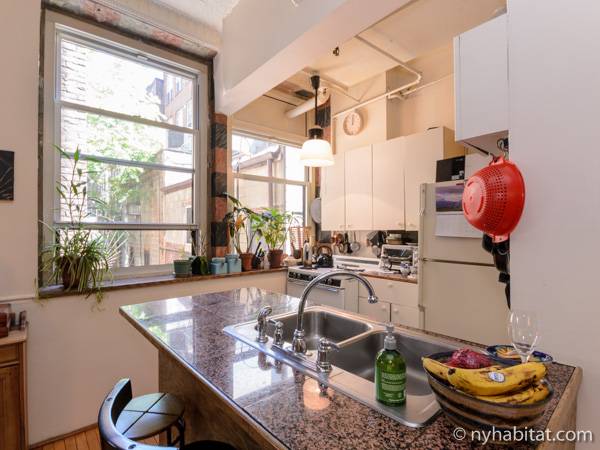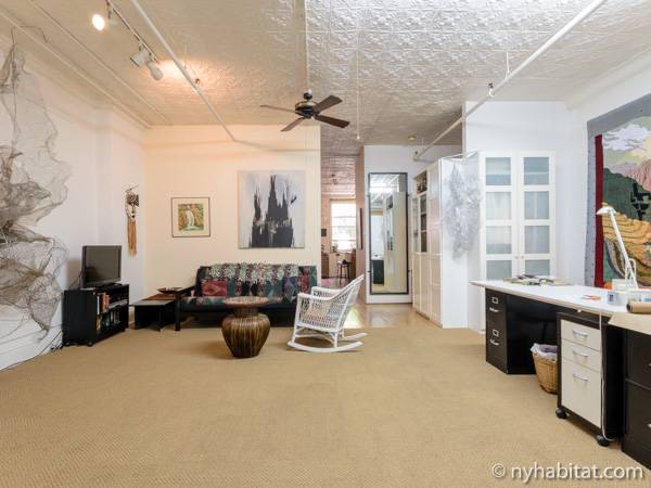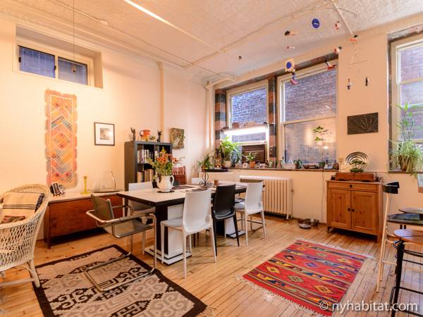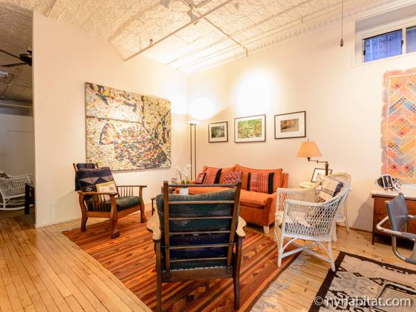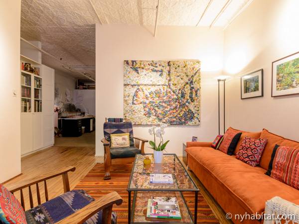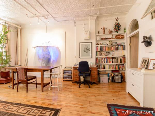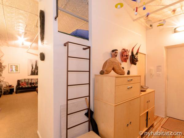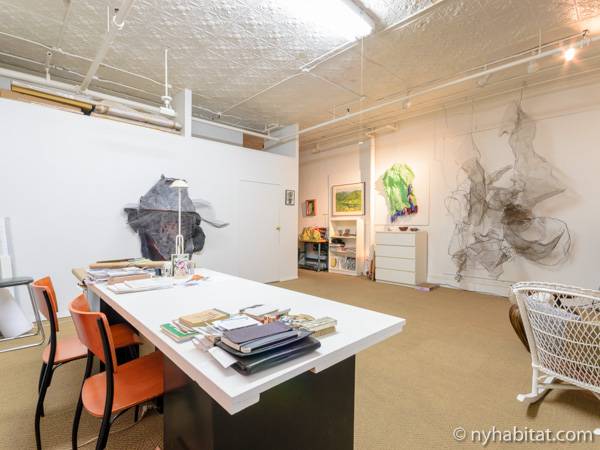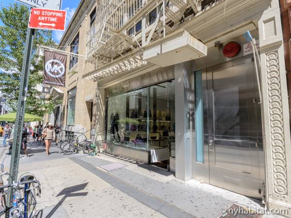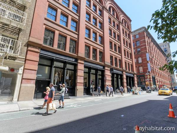 Este apartamento de un dormitorio está situado en el SoHo, uno de los barrios más populares de Nueva York. El loft está ubicado en Prince Street & Greene Street, en la segunda planta de un edificio de siete pisos en una parte histórica del lugar. La puerta delantera del edificio se mantiene cerrada y se necesita una llave personal para entrar o también se puede usar el sistema de interfono.