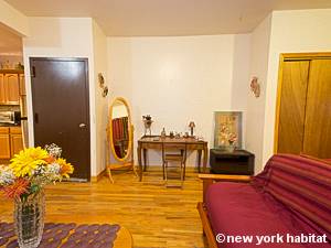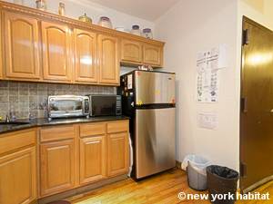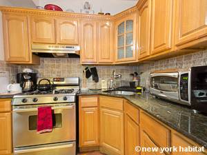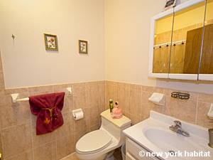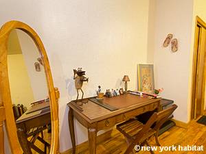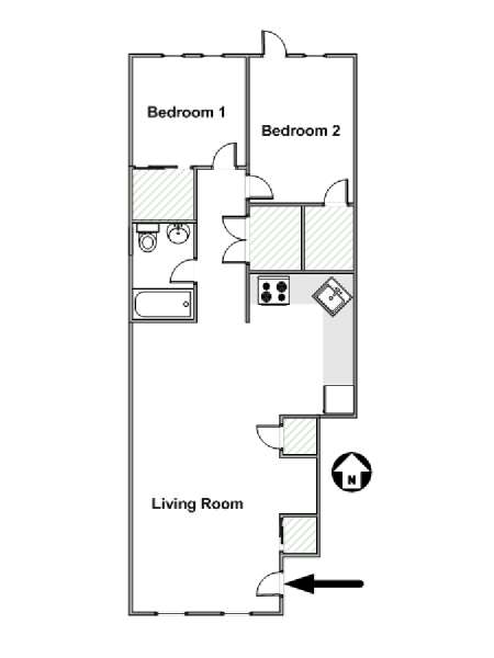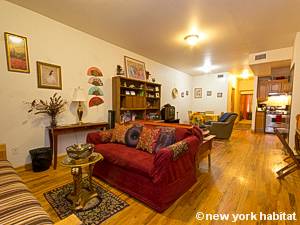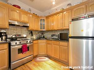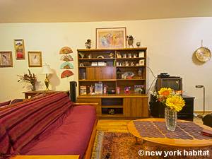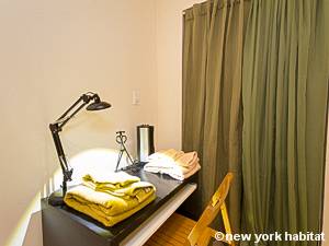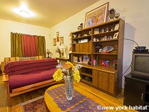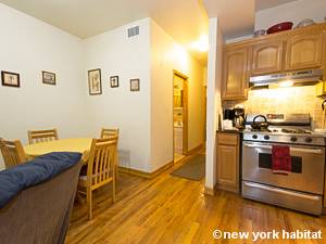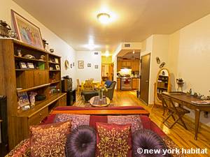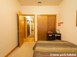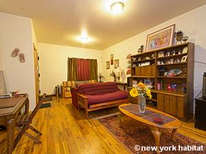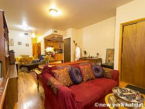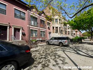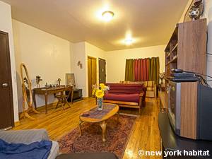 Este apartamento de 2 dormitorios está situado en el barrio Crown Heights, Brooklyn, Nueva York. Está disponible como piso en alquiler o como piso para compartir en el que cada dormitorio se alquila por separado pero se comparten la sala de estar, la cocina y el baño. En este caso, el dueño también utilizará las estancias compartidas como la cocina y la sala de estar. Este apartamento está situado en Bergen Street y New York Avenue, en la primera planta (equivalente a la planta baja en Europa) de un edificio adosado de dos plantas. Ofrece suelos de parqué y habitaciones completamente amuebladas.