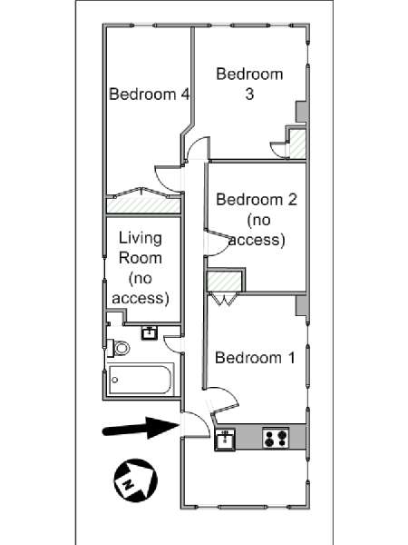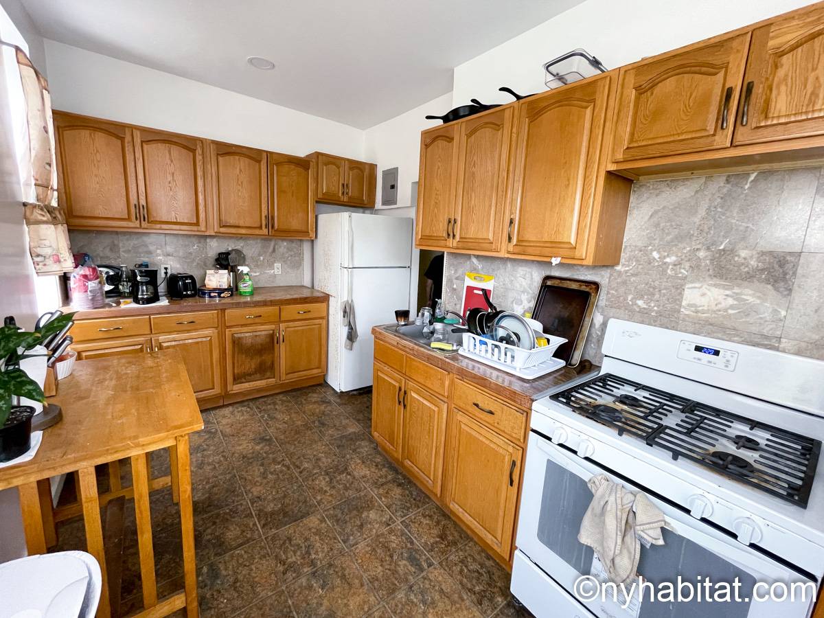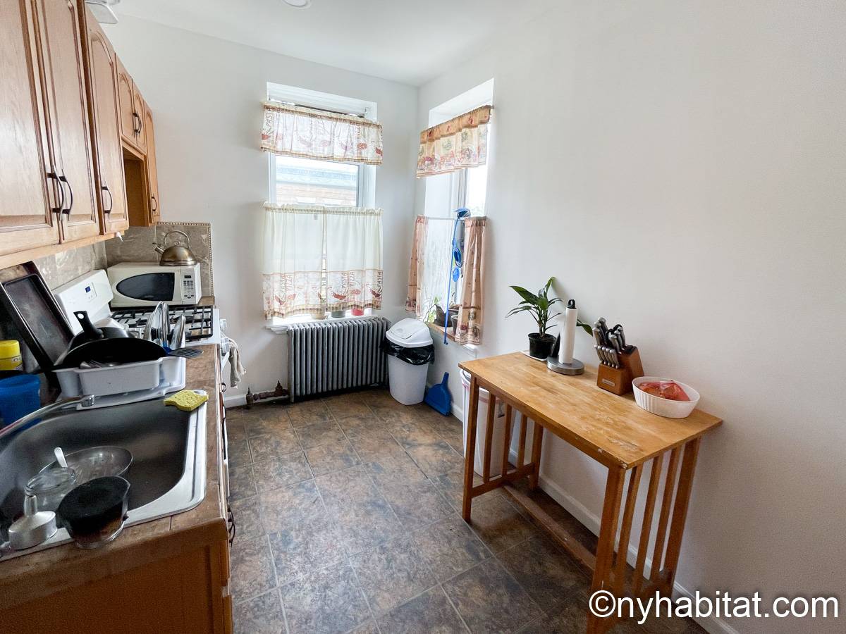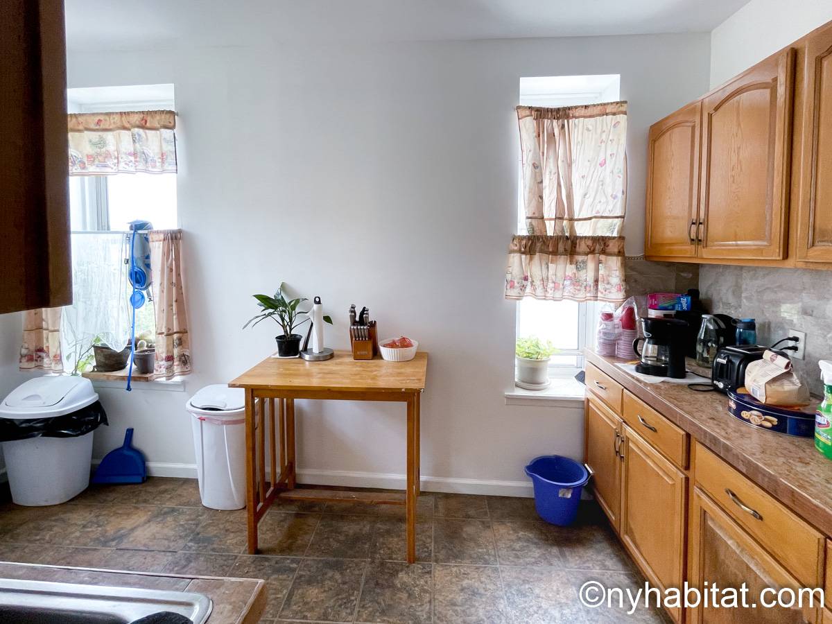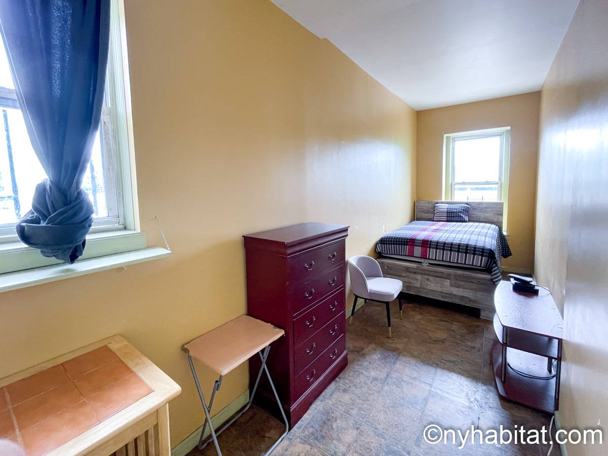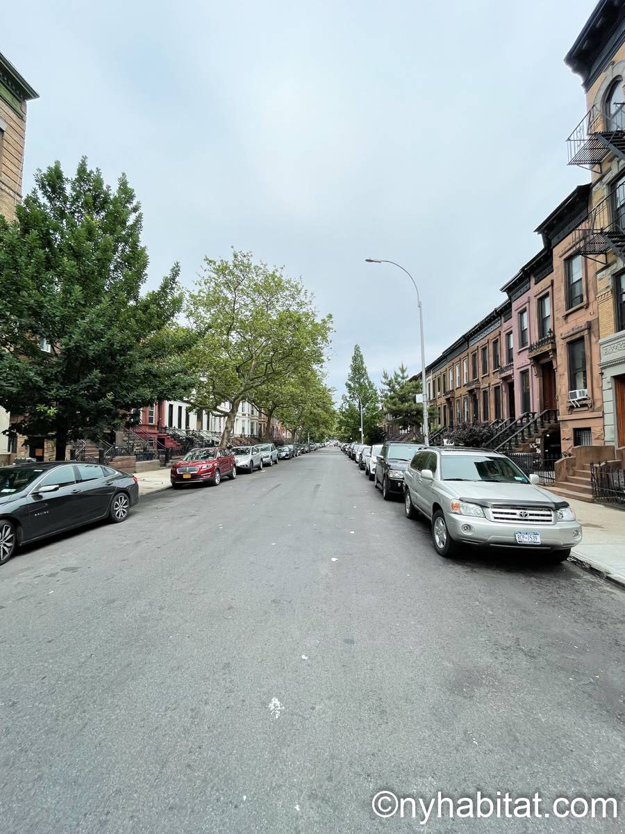 Estas habitaciones en alquiler se encuentran en un apartamento de 4 dormitorios compartido en una casa adosada del barrio de Bedford-Stuyvesant . Se sitúan en la planta superior de una casa de cuatro plantas (equivalente a una casa de tres plantas en Europa) sin ascensor que goza de una gran iluminación.