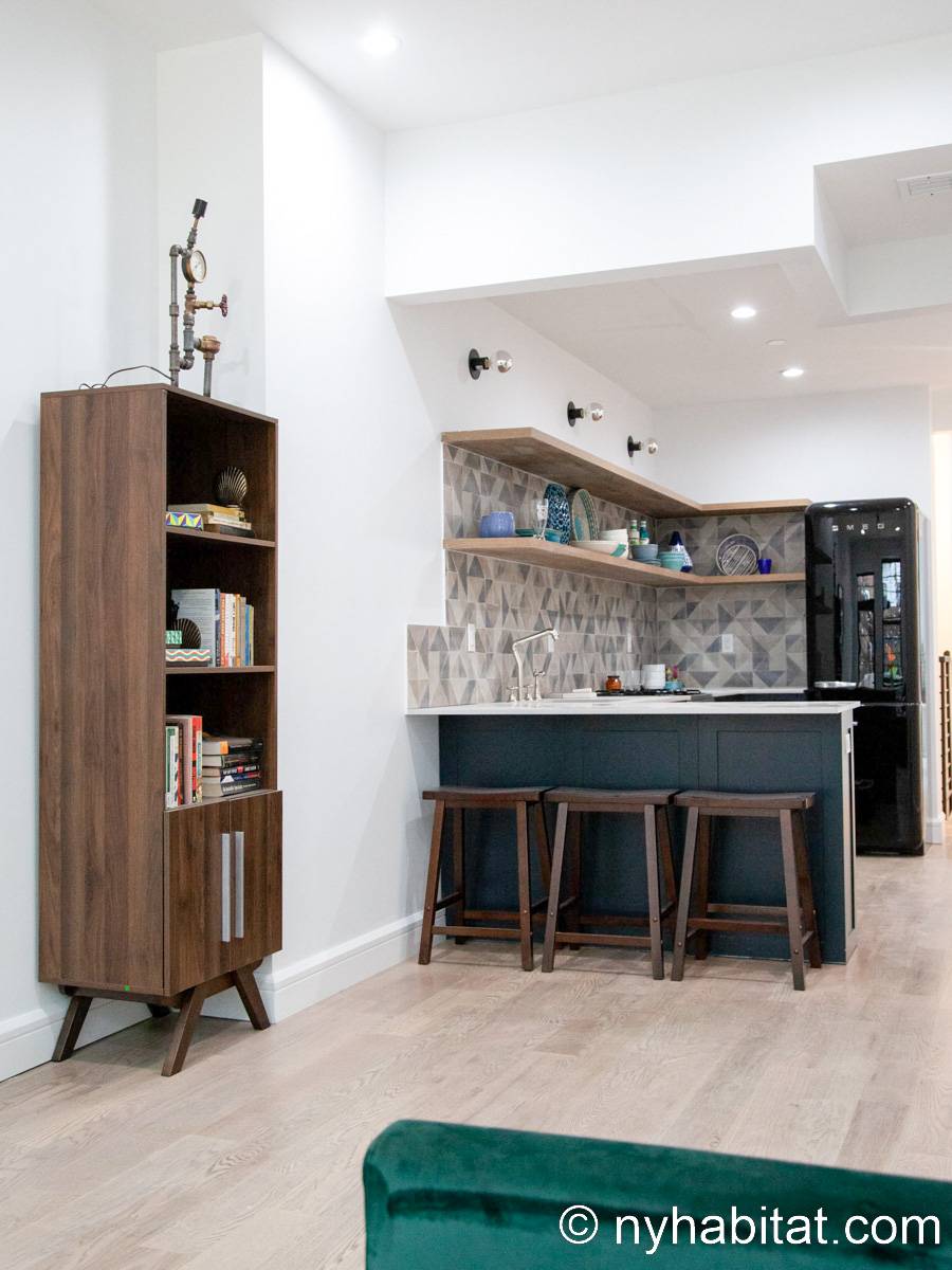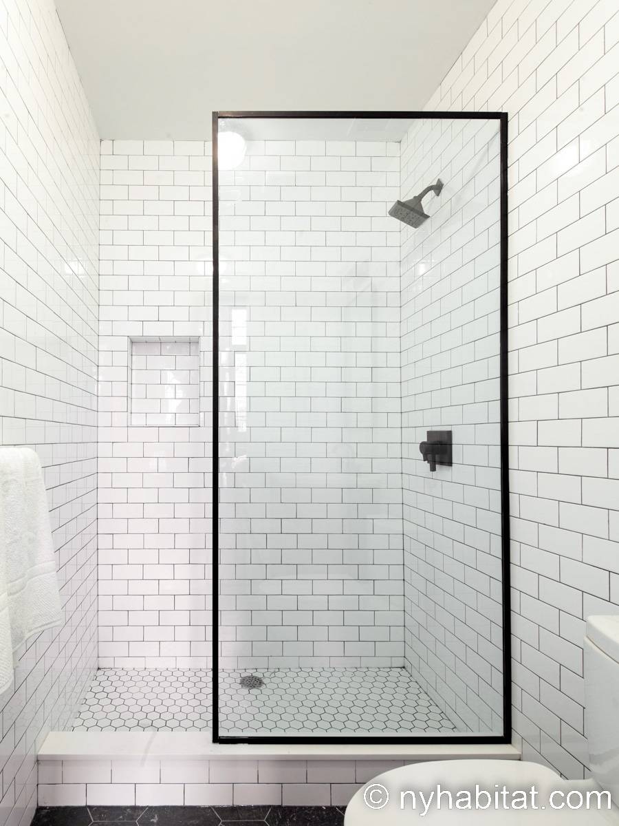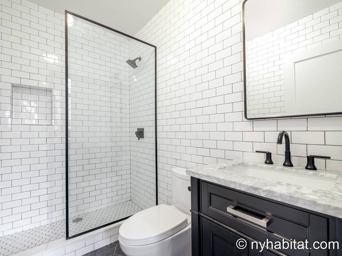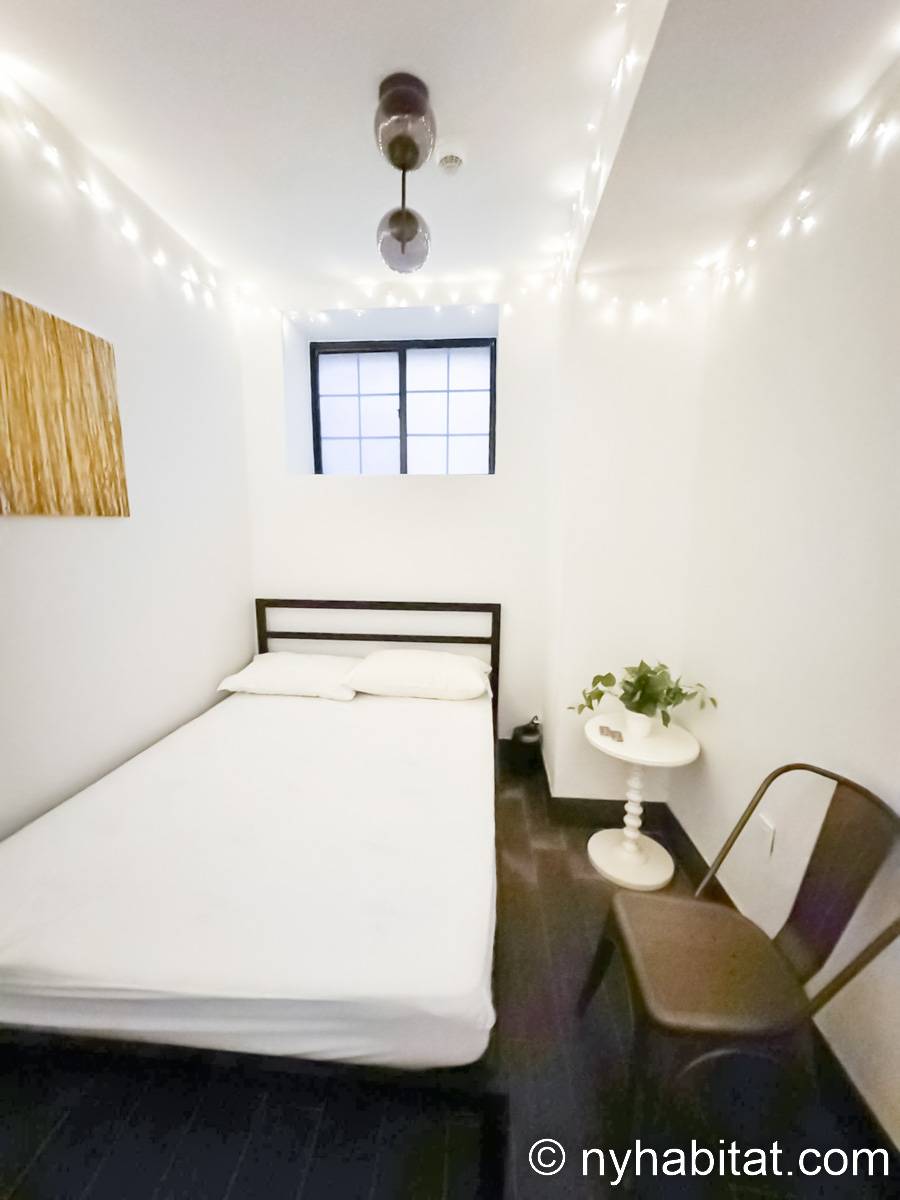 En esta habitación amueblada en alquiler, dispondrá de lo esencial para una estancia cómoda en Nueva York. Una cama tamaño queen, un armario, y dos cómodas para guardar todas sus pertenencias decoran la habitación disponible. Tendrá acceso a otras partes del apartamento como la cocina, la sala de estar y el baño, que están modernamente amueblados y realzados con mucha luz natural. El ladrillo expuesto en la sala de estar aporta autenticidad a este apartamento neoyorquino.