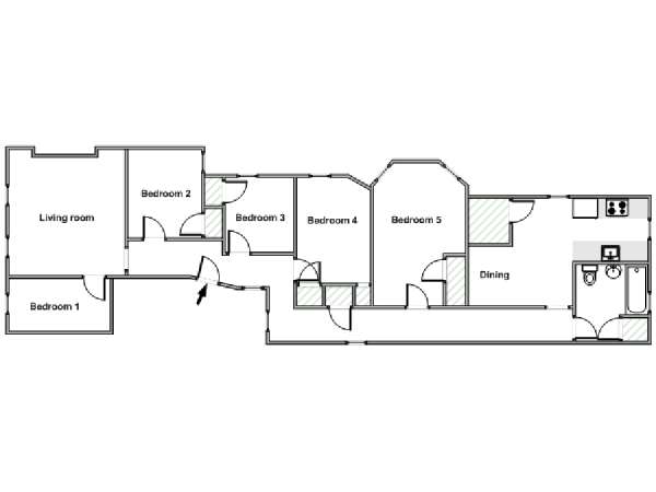 Este piso para compartir de 5 dormitorios está ubicado en West 135th Street y Frederick Douglass Boulevard, en Harlem, Upper Manhattan. Este se encuentra en el piso 3 (equivalente al piso 4 en Europa) de un edificio neoyorquino de poca altura de 5 pisos sin ascensor y con habitaciones de varios tamaños para alquilar.