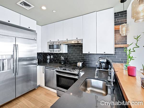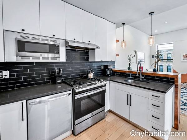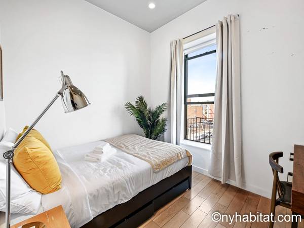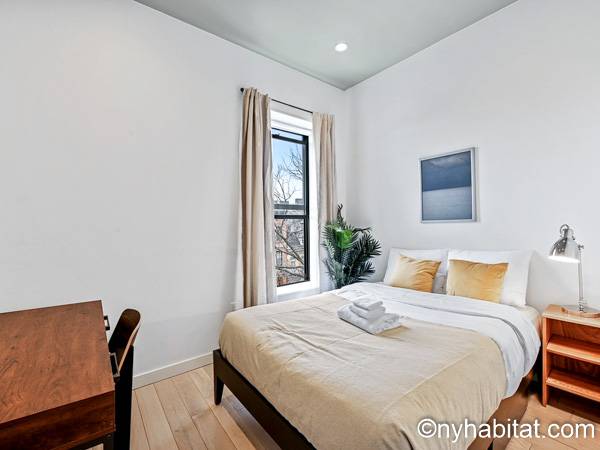 En una de las zonas históricamente significativas y centradas en la cultura de Nueva York, Bedford-Stuyvesant (Bed-Stuy), este apartamento amueblado hace honor a la tradición del barrio con seis dormitorios y dos baños. Este apartamento de la cuarta planta (equivalente a la tercera planta en Europa) se encuentra en la parte superior de un edificio con ascensor cerca de la intersección de Tompkins Avenue y Willoughby Avenue en Brooklyn.