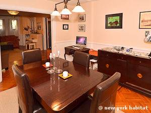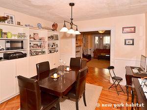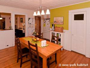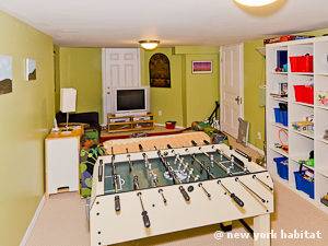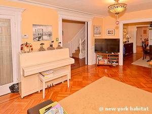 Pros - a 2 manzanas del metro (a 30 minutos del centro de Manhattan, necesitarás ticket de Metro semanales o mensuales, que dan acceso al autobús y al metro). - Numerosas habitaciones, televisión, DVD (hay algunas películas de niños y adultos almacenadas), piano, futbolín, cocina aprovisionada de ollas/cazuelas, lavadora--secadora para ropa (un poco desvencijado, pero había detergente), buenos libros en las estanterías. - El aire acondicionado es esencial por la humedad y el calor. - un propietario agradable muy accesible. - una zona segura, junto a Prospect Park. - A pocos metros hay supermercados pequeños y otros no tan pequeños; hay CVS cerca; se puede ir andando a Target; se puede ir en metro a buenos restaurantes.