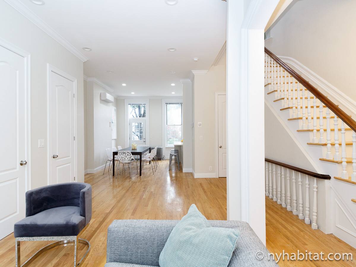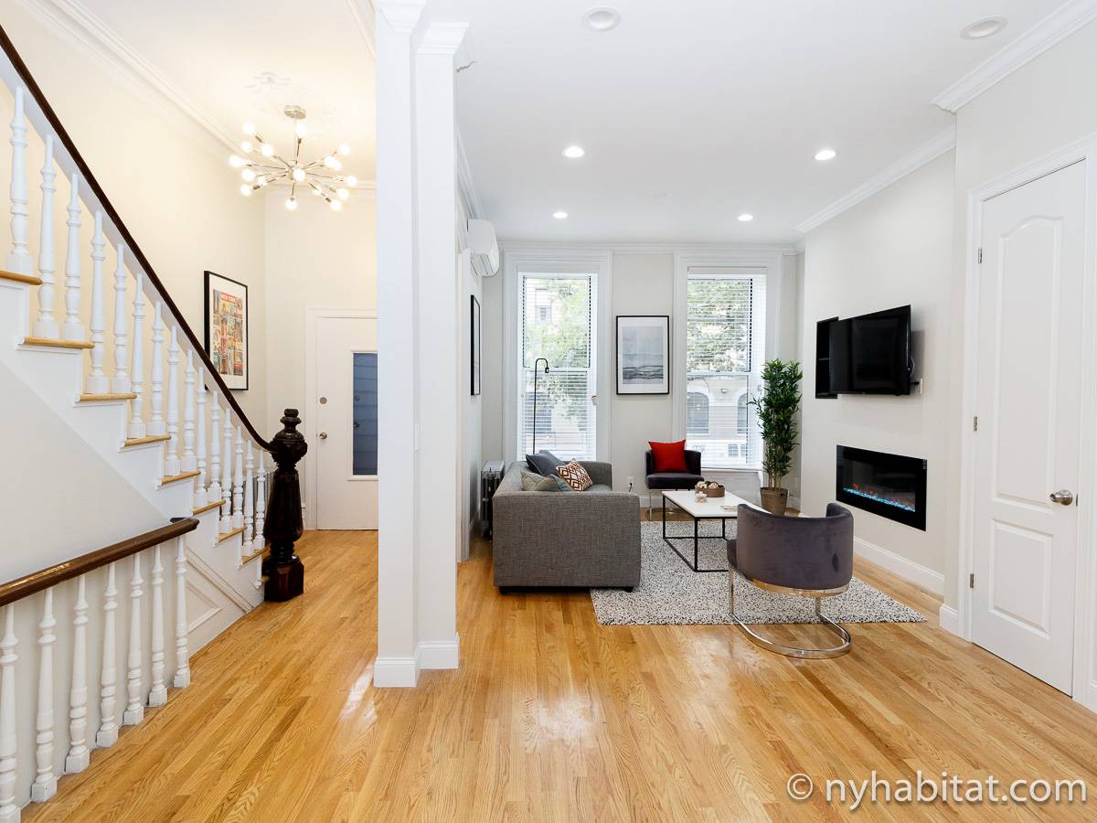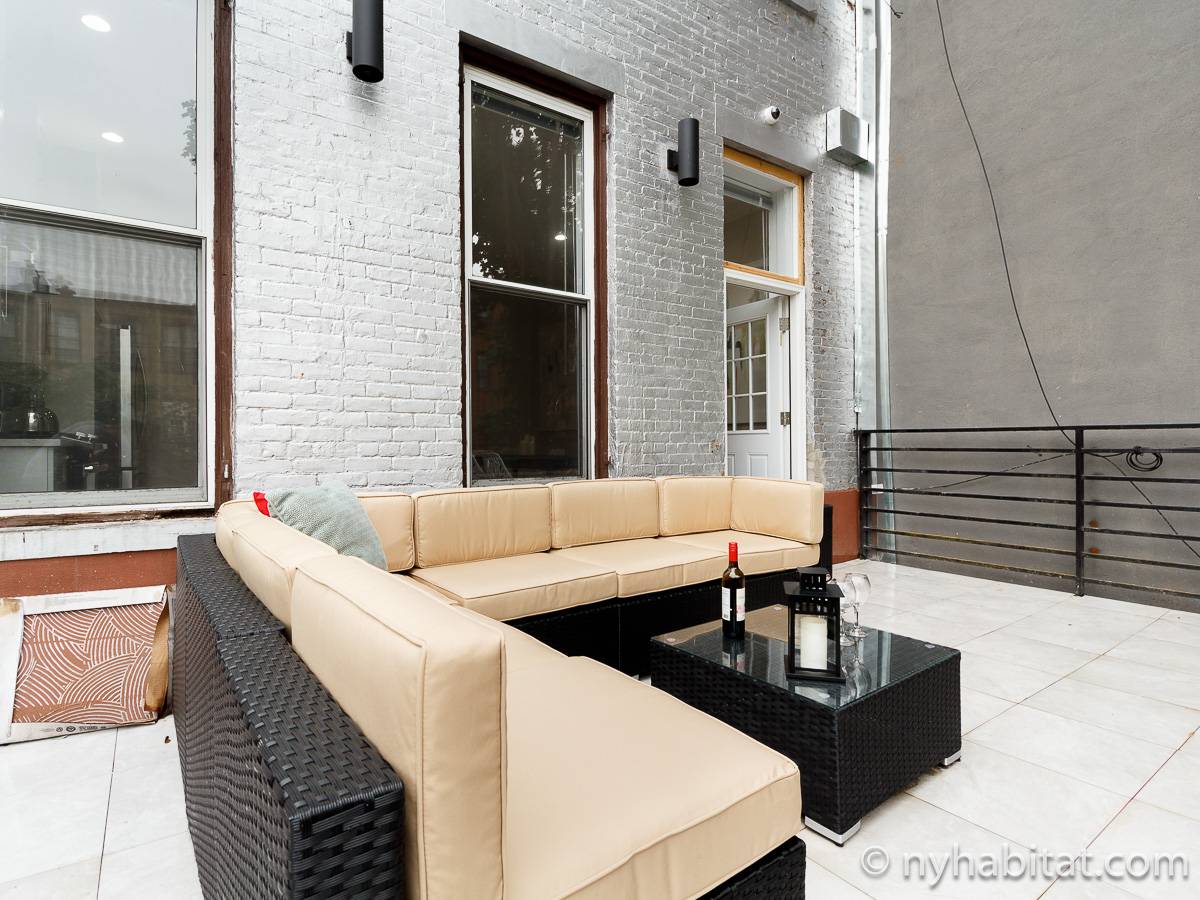 ¡Imagine la paz y serenidad que se puede encontrar con en este apartamento dúplex amueblado de dos dormitorios! Descubra la comodidad en esta casa moderna, adosada, clásica y espaciosa de dos pisos que se encuentra en Bedford-Stuyvesant, un barrio central de Brooklyn. Los servicios incluyen lavandería y terraza privada en el patio.