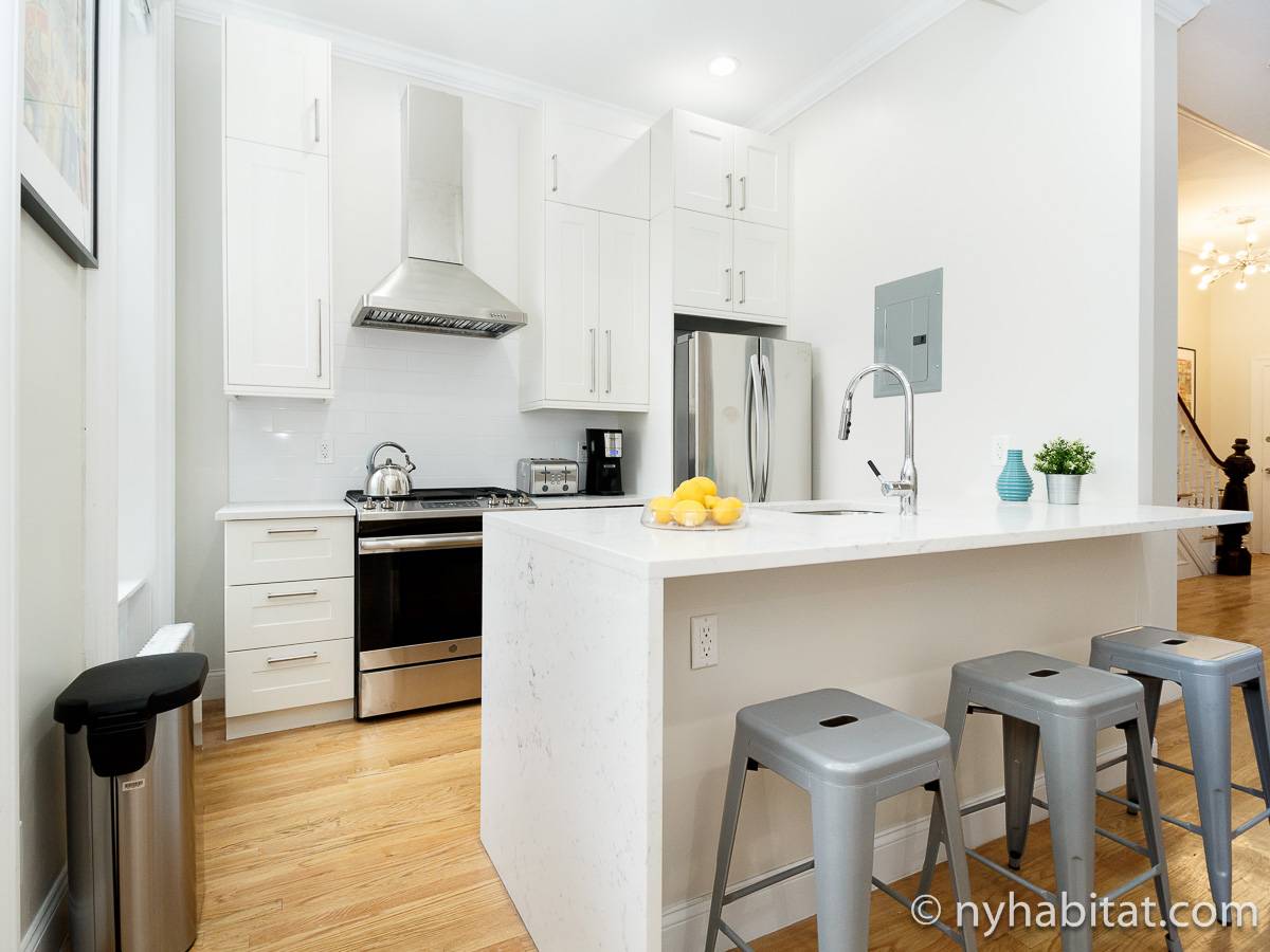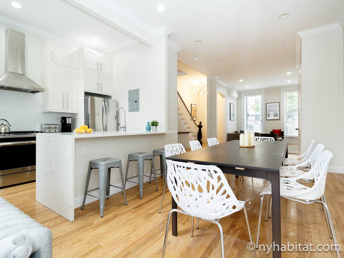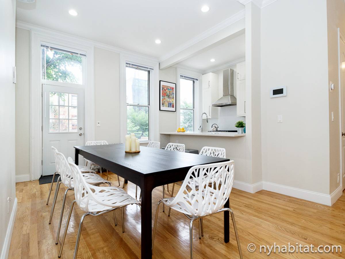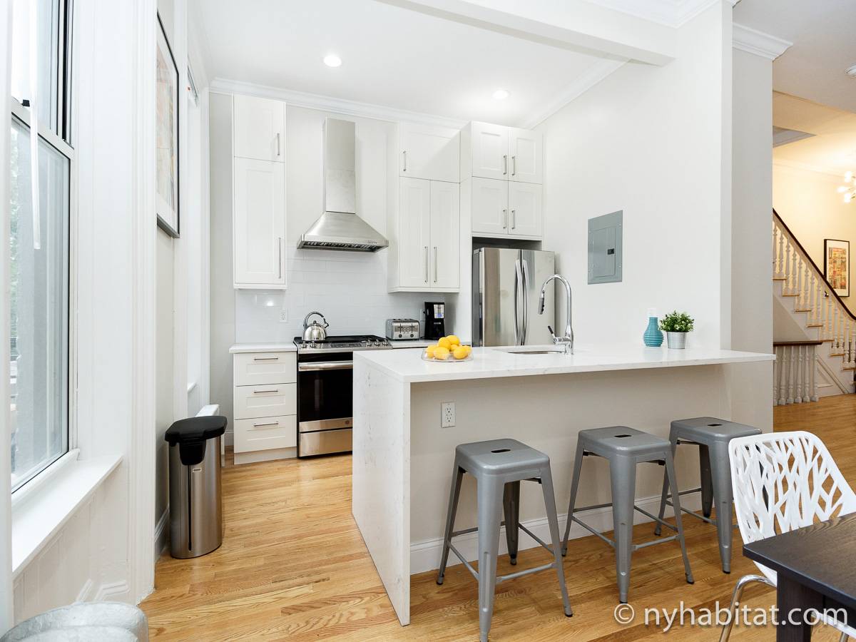¡Imagine la paz y serenidad que se puede encontrar con en este apartamento dúplex amueblado de dos dormitorios! Descubra la comodidad en esta casa moderna, adosada, clásica y espaciosa de dos pisos que se encuentra en Bedford-Stuyvesant, un barrio central de Brooklyn. Los servicios incluyen lavandería y terraza privada en el patio.