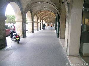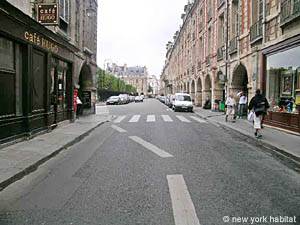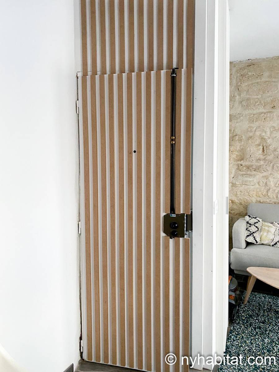 Ubicado en Rue du Pas de la Mule entre Boulevard Beaumarchais y Place des Vosges, el apartamento de un dormitorio se encuentra en la primera planta de un edificio de seis pisos de principios del siglo XVIII sin ascensor. Dispone de un sistema de seguridad con código in situ.