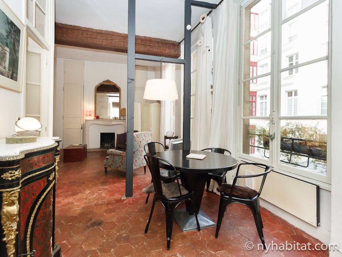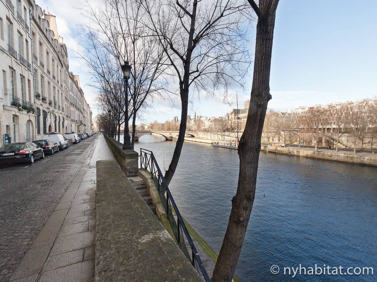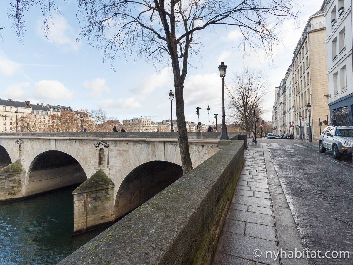 Situado en el Quai de Bourbon, entre las calles Rue Le Regrattier y Rue des Deux Ponts, este apartamento de un dormitorio ocupa el segundo piso de los cuatro que tiene este edificio del siglo XVII sin ascensor. Para asegurar su privacidad, hay un sistema de seguridad digital instalado. Además, tiene una lavadora a su disposición.