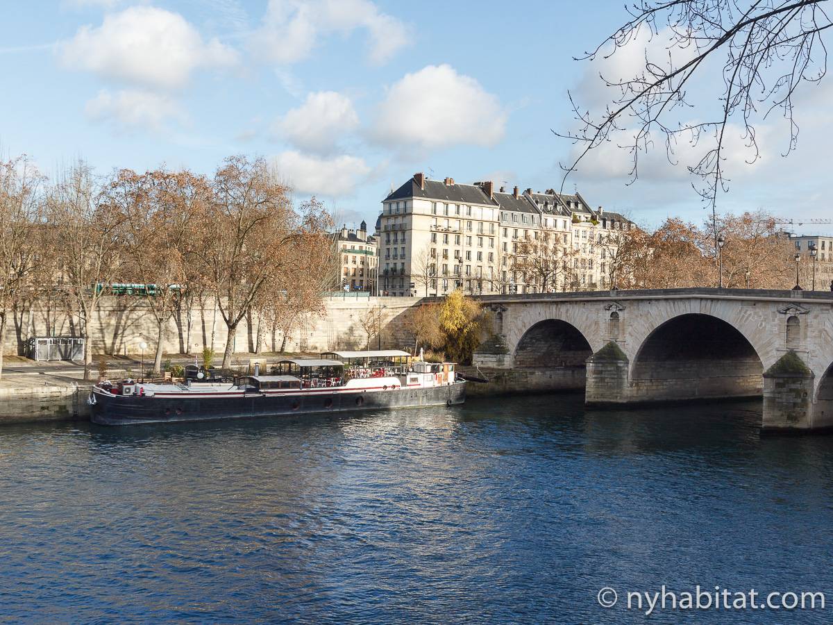 La Île Saint-Louis es uno de los lugares más elegantes del mundo. Puedes ir andando a cualquier lado desde este tranquilo apartamento junto al muelle. |