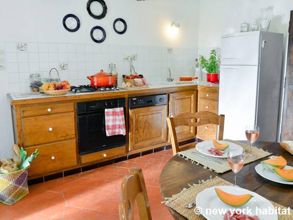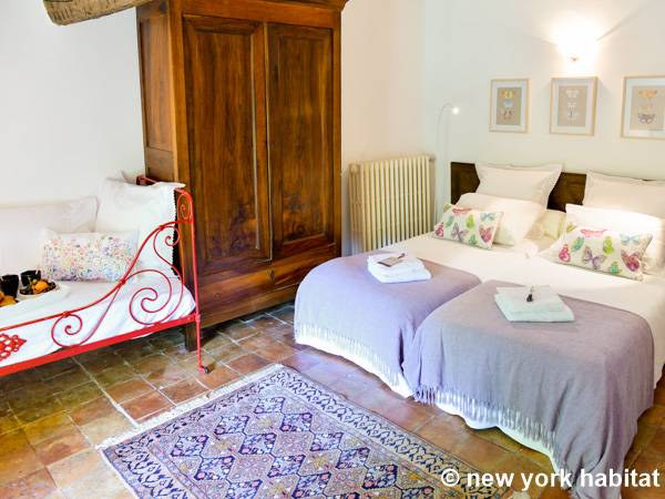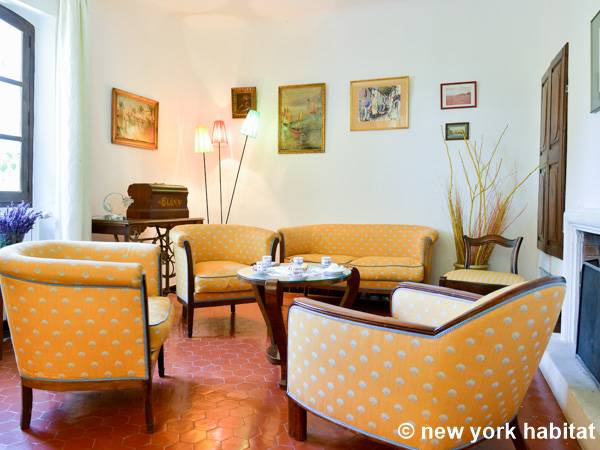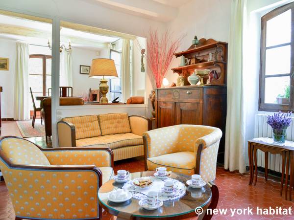 Encontrará esta villa típica provenzal debajo de un limero y rodeada de grandes plátanos, cedros y pinos. Dentro del apartamento, el salón está amueblado con un sofá y sillones, lo cual proporciona mucho espacio para sentarse. En el invierno, es la zona perfecta para pasar una noche acogedora en frente de la chimenea. En el verano, coloque la barbacoa en la terraza y disfrute de los hermosos alrededores. Si no quiere utilizar la barbacoa, también tendrá a su disposición todos los electrodomésticos para preparar comidas en la cocina, incluidos un horno, un microondas, una cafetera, un tostador e incluso la comodidad de un lavavajillas. La cocina cuenta con una mesa de comedor, pero si prefiere tener más espacio, podrá disfrutar de sus comidas caseras en un comedor separado. El apartamento de cuatro dormitorios está provisto de un baño completo con bañera y los WC por separado.