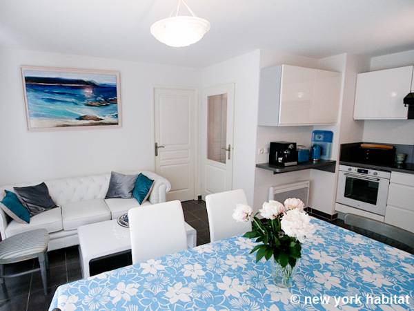 Se sentirá como en casa en los 21 m2 de su sala de estar/comedor, amueblada con un estilo moderno y que incluye un sofá, una mesa y una televisión. Además conecta con la cocina, que se abre al salón. Los dormitorios de este apartamento miden 11 y 10 m2 respectivamente, el primero de ellos tiene una cama queen (160 cm) y el segundo incluye una cama de matrimonio (140 cm) y una televisión.
