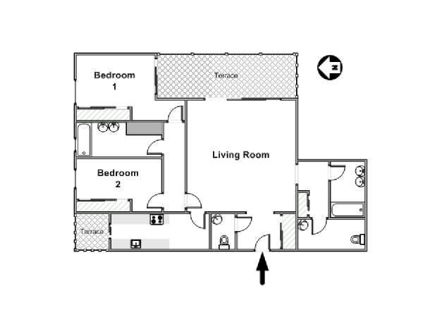 El dormitorio 1 ofrece una cama matrimonial y acceso al balcón, que incluye una mesa y sillas para cenar al aire libre. En el dormitorio 2 encontrará dos camas individuales, lo que hace de este apartamento de vacaciones la opción ideal para familias o grupos. Los dos primeros baños cuentan con una ducha y una bañera, mientras que el tercero es un aseo con un inodoro y un lavabo. Asimismo, el alojamiento está provisto de lavadora para su comodidad.