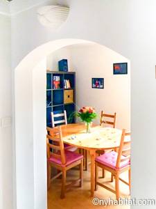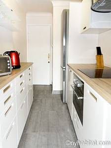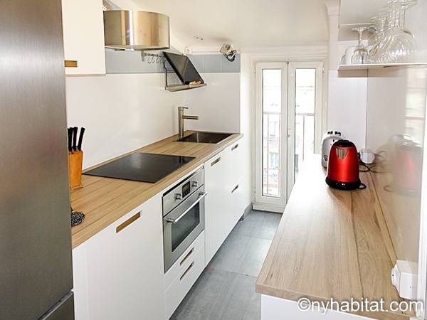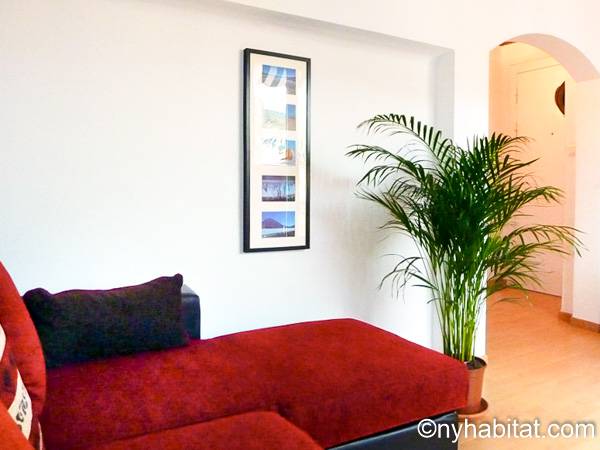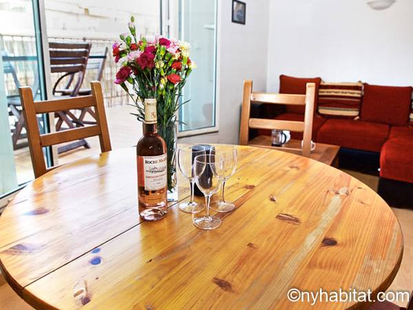 Los apliques de luz montados en la pared y el suelo de madera de color miel contribuyen a la personalidad única de este apartamento. Disfrute de las vistas a las colinas mientras saborea su comida en la terraza orientada hacia al oeste. Podrá preparar las mejores recetas de su repertorio con la ayuda de la cocina separada que viene equipada con un frigorífico, un congelador, un horno y un microondas, además de una tostadora y una cafetera. O puede caminar por los vecindarios colindantes y ver como los paisanos preparan platos délicieux en cualquiera de los muchos restaurantes cercanos. En la sala de estar contará con un sofá para relajarse y con un sofá-cama tamaño queen para descansar. Puede distraerse en frente del televisor, o puede refrescarse con el aire acondicionado. Si prefiere comer dentro, también hay una mesa de comedor. Hay una ducha en el baño y una cama tamaño queen en el dormitorio, además de aire acondicionado.